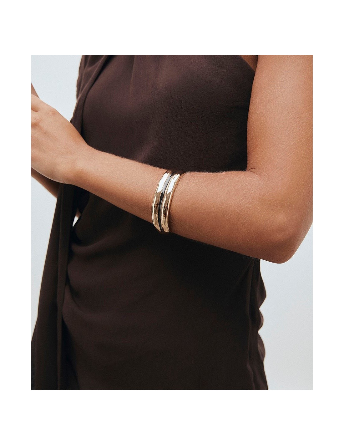 Brazalete dúo Horizonte bañado con una gruesa capa de oro macizo de 18 kt, lo que garantiza una mayor durabilidad.
