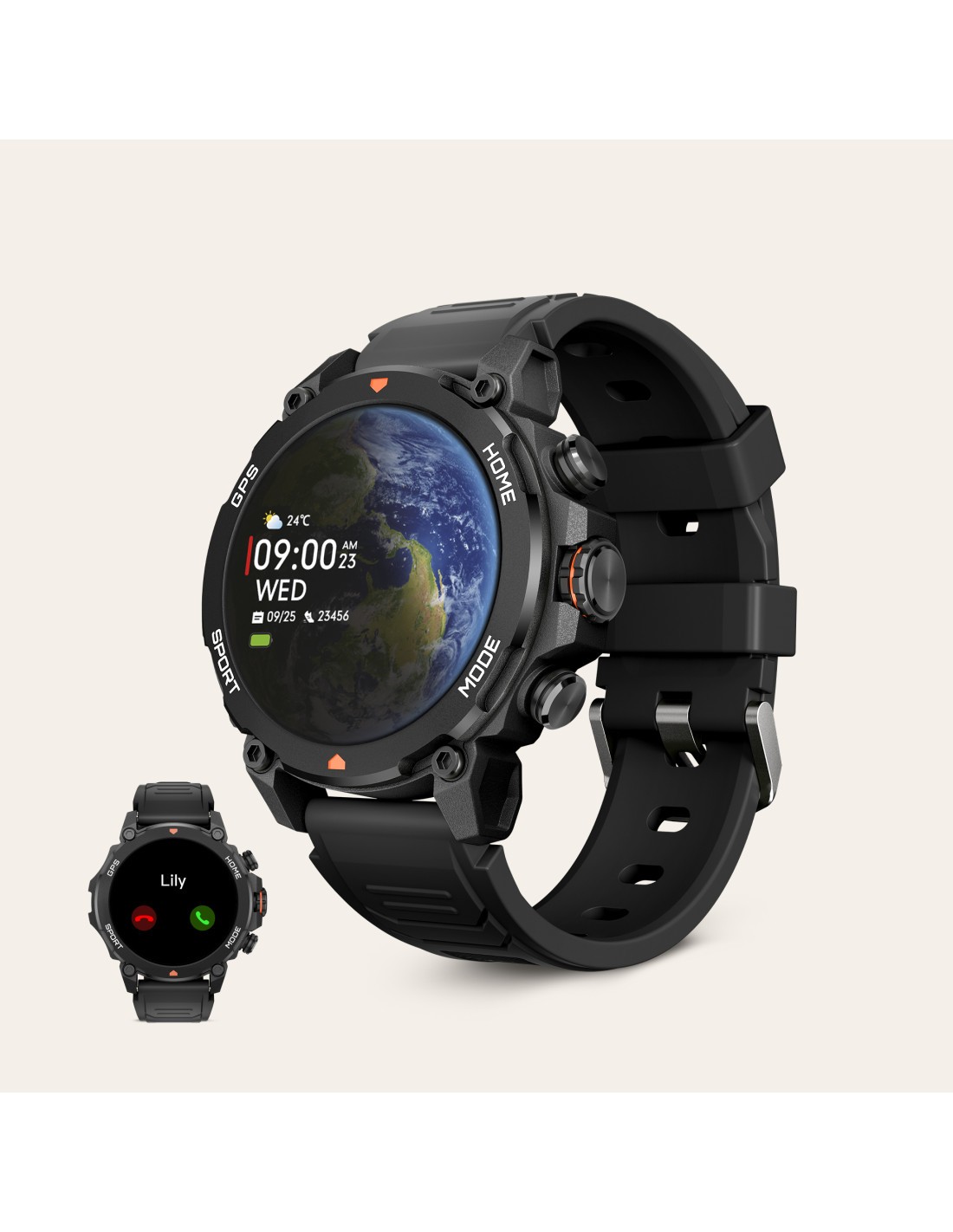 Explora lo desconocido con tu smartwatch KSIX Explorer y su GPS integrado. Llama y recibe llamadas usando el micro y altavoz interno. Recibe notificaciones de tus apps y consúltalas desde la pantalla AMOLED de 1,43”. Monitorea tu salud las 24 horas durante tus aventuras o tus entrenos. ¿Preparando una travesía larga? Gracias a los 9 días de autonomía del Explorer no te harán falta atajos. Y si eres de los que prefieren las aventuras acuáticas, el Explorer soporta hasta 5ATM.