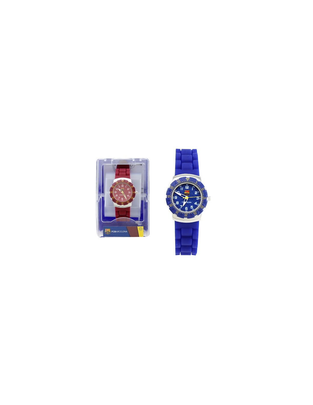 Reloj FC Barcelona Cadete granate. Caja de acero y correa de silicona granate. Esfera segundero de 3 cm. con escudo del Barça. Cierre hebilla.