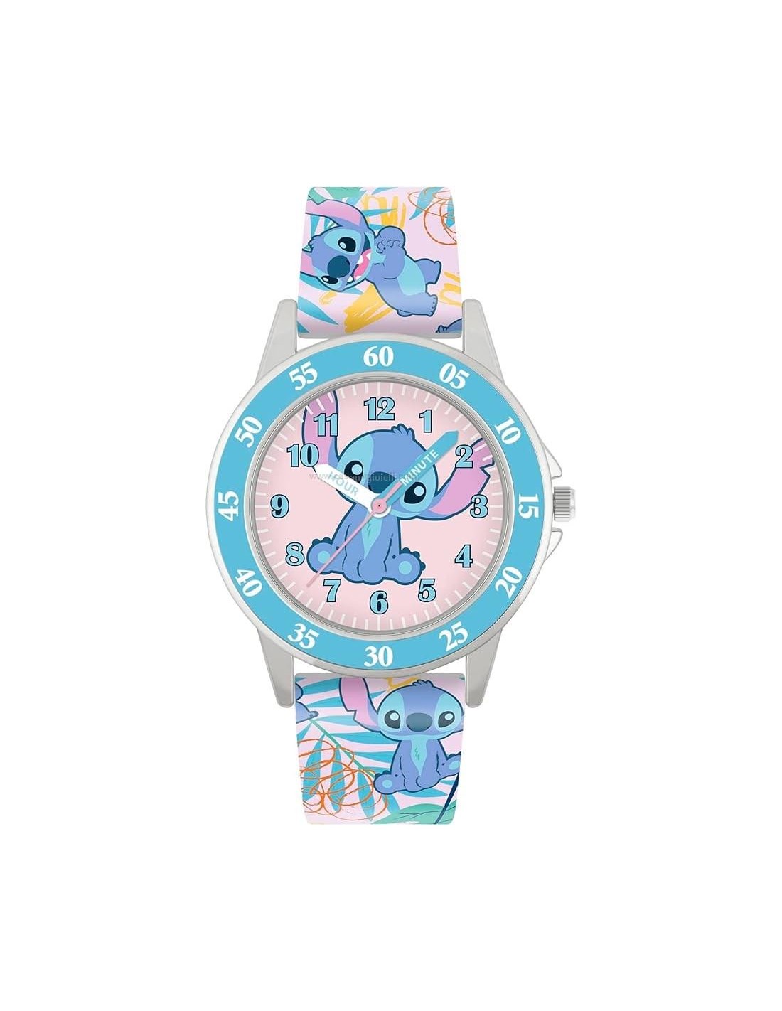Reloj Disney para niño y niña, caja de acero de 33 mm, esfera y correa de caucho con el personaje de Stitch. Movimiento de cuarzo, cristal mineral.