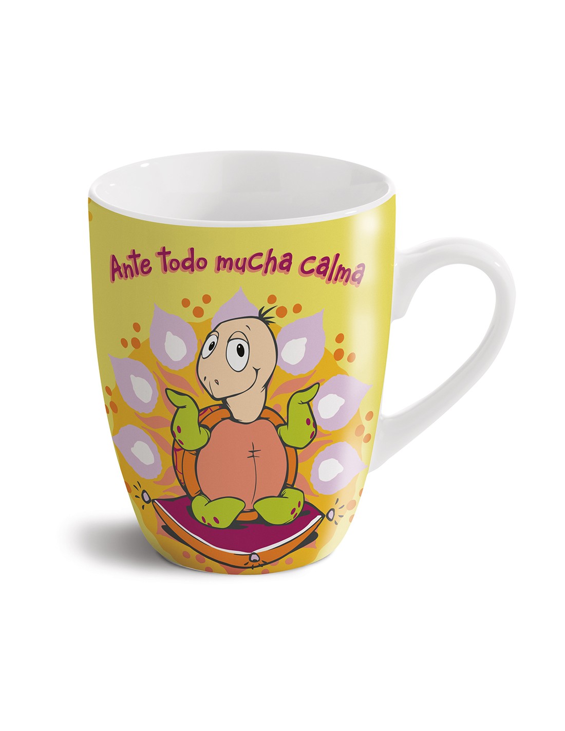 Preciosa taza de porcelana de altísima calidad, presentación en caja de regalo. " Ante todo mucha calma"