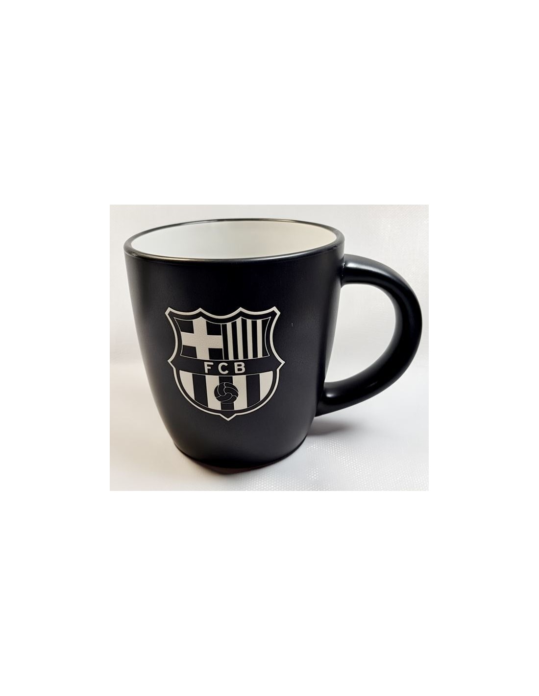 Taza cerámica del F.C. Barcelona de color negro. Gravado en relieve