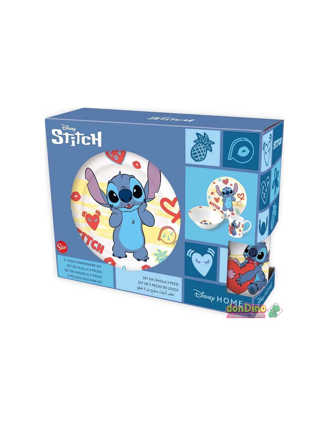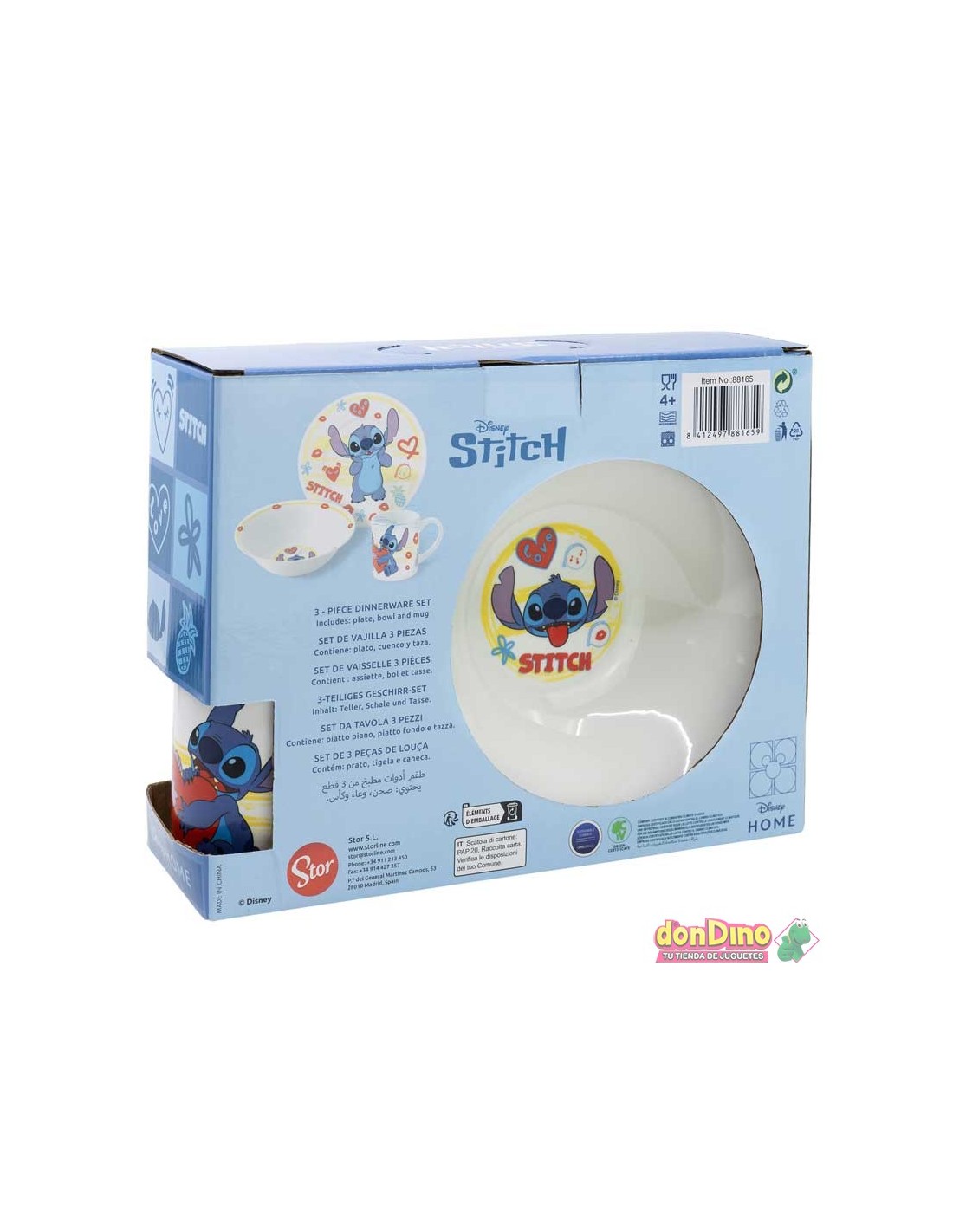 Set de merienda de ceránica compuesto por cuenco, plato y taza · Caja con ventana delantera y trasera sin plástico · Medidas del set: 25 x 8,7 x 19,5 cm · Decoradas con motivos de la licencia · Fabricada con licencia oficial LILO & STITCH