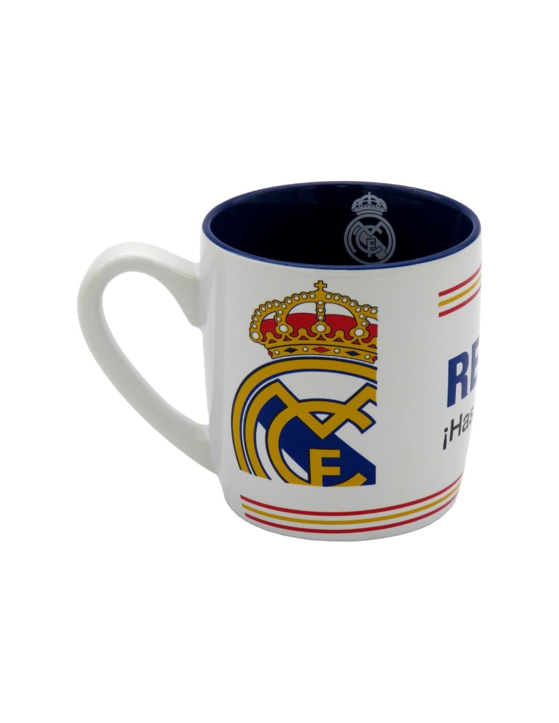 Taza Real Madrid de cerámica, diseñada para disfrutar del desayuno, luciendo los colores y escudo del Real Madrid