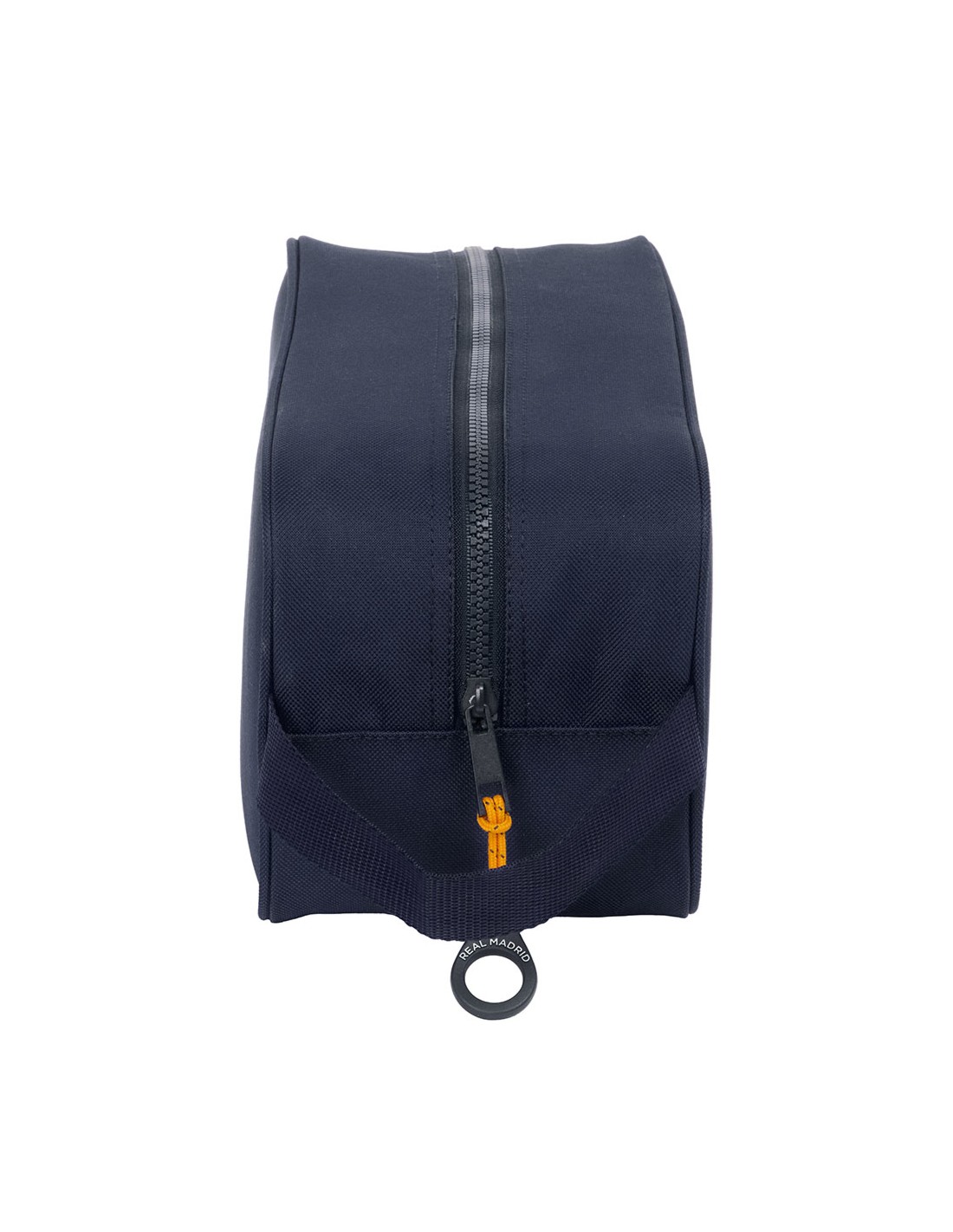 Escudo de goma con relieve 3D, y leyenda Real Madrid en la parte frontal.